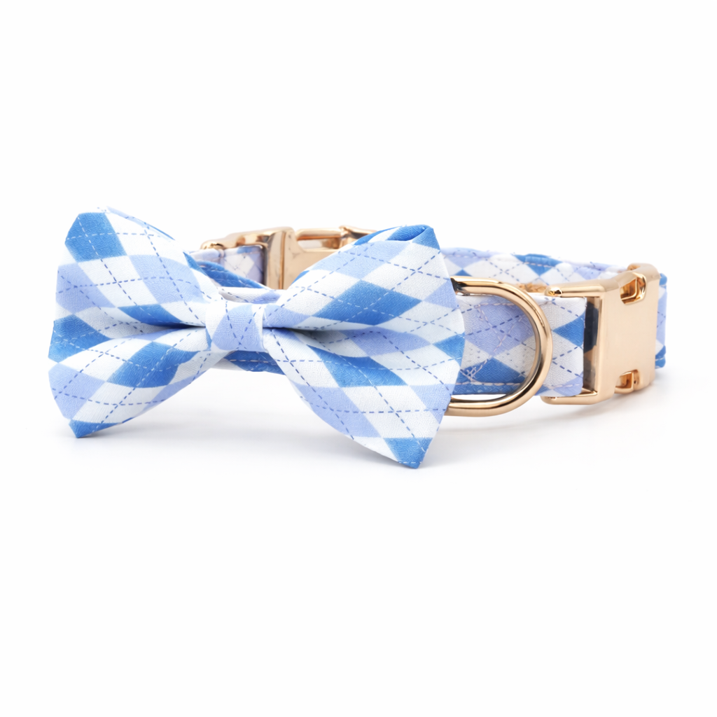 Argyle Bow Collar & Leash Set – Sky Blue