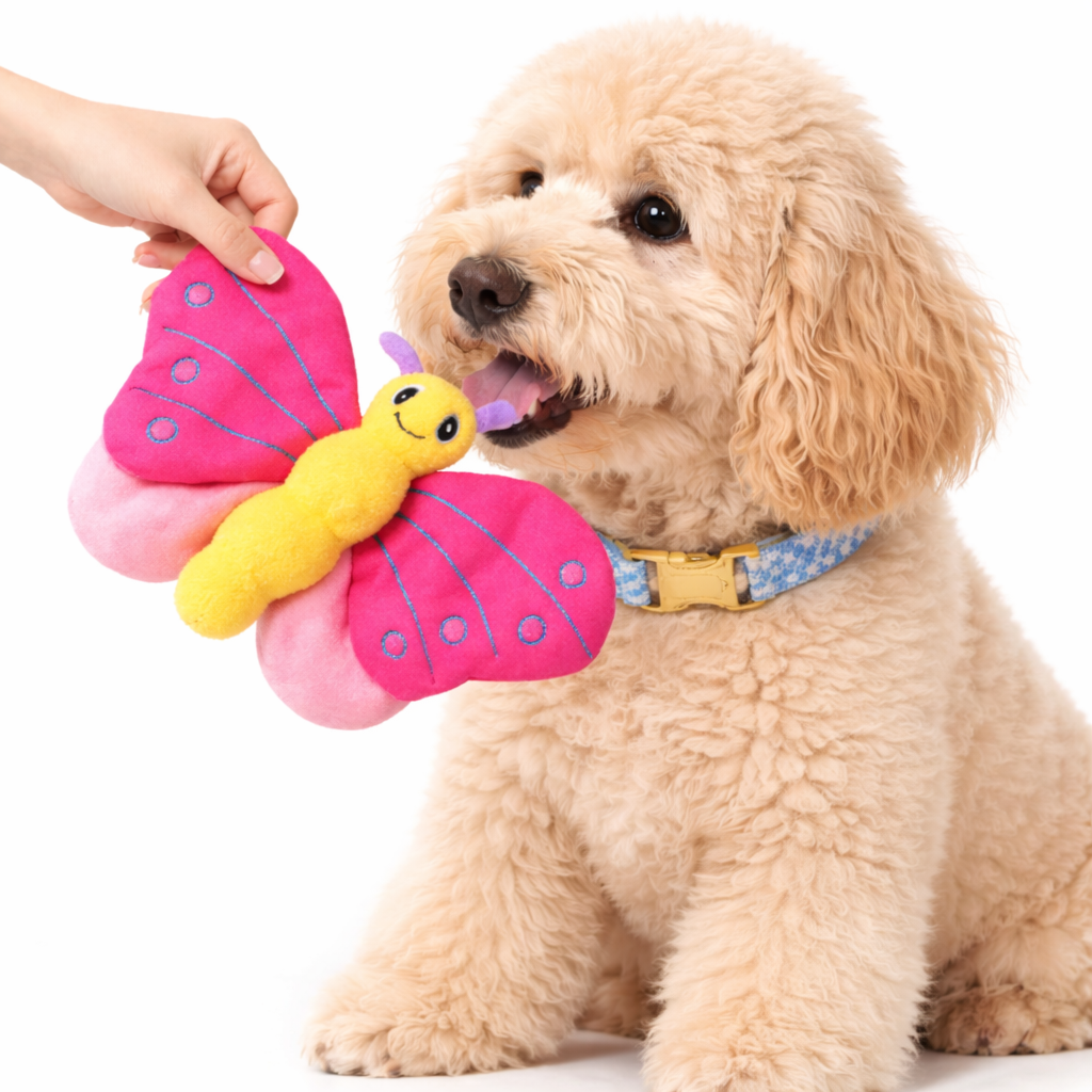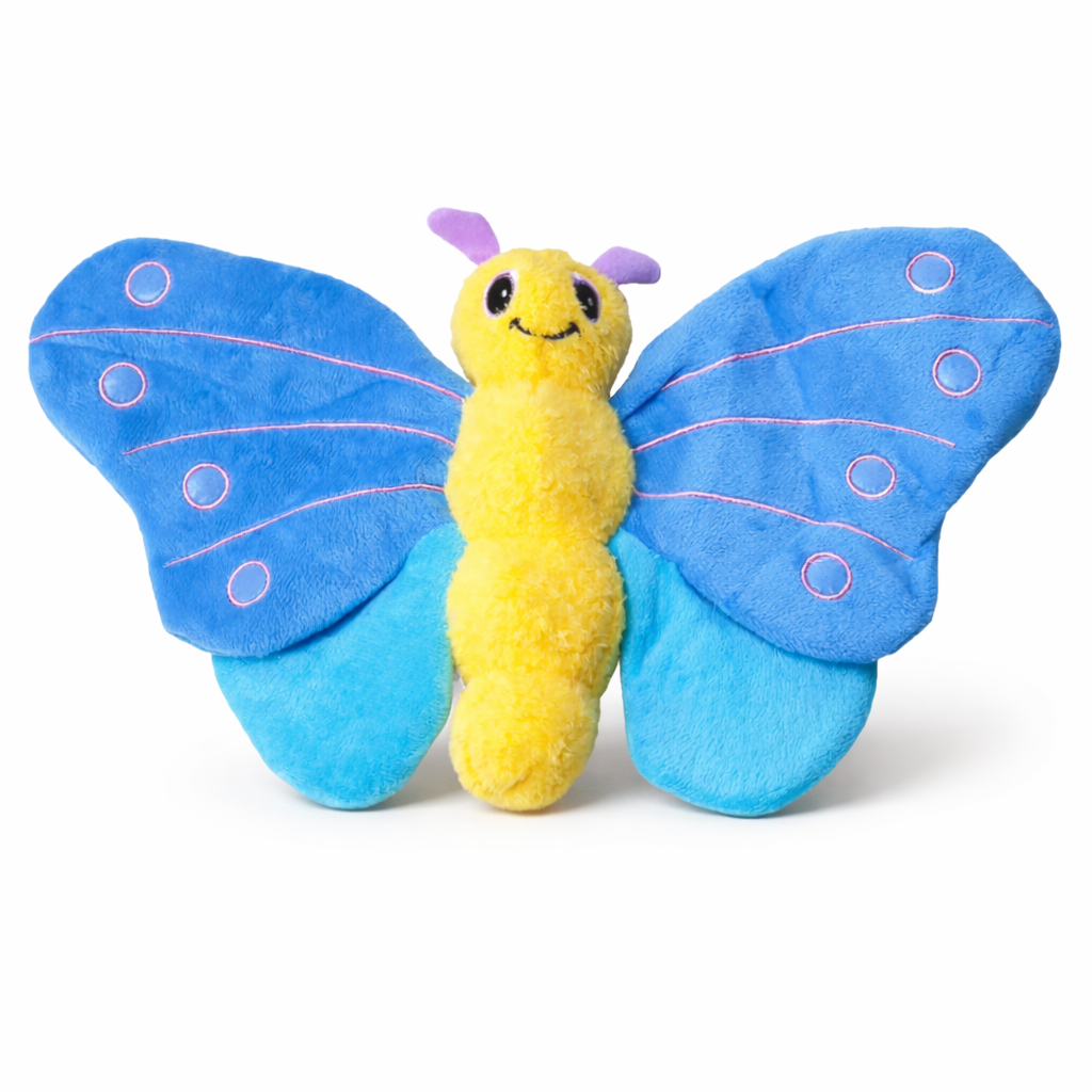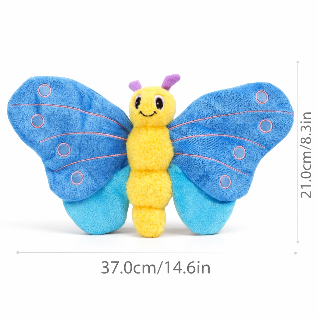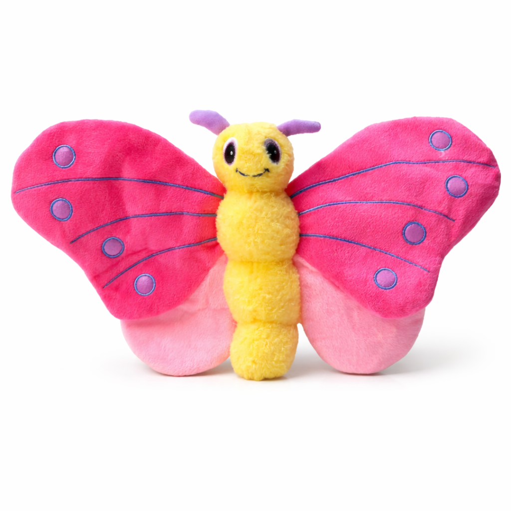 A charming butterfly plush toy featuring soft colors and a playful silhouette.