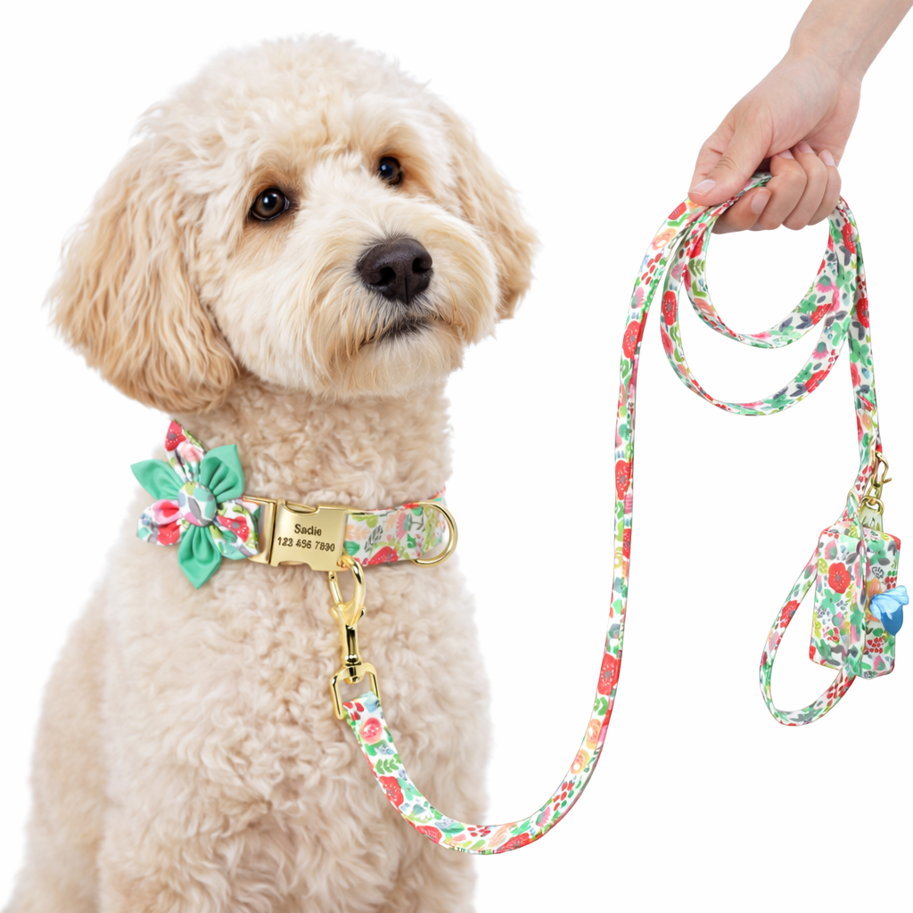 Floral Garden Collar & Leash Set with Poop Bag Holder